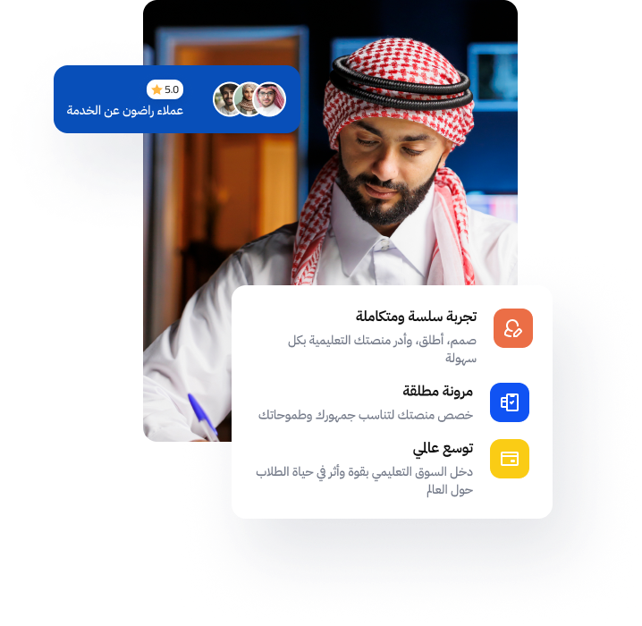 ابدأ في إنشاء منصتك التعليمية الخاصة بسهولة واحترافية مع "بريق". نوفر لك كل الأدوات اللازمة لإيصال معرفتك للعالم.
